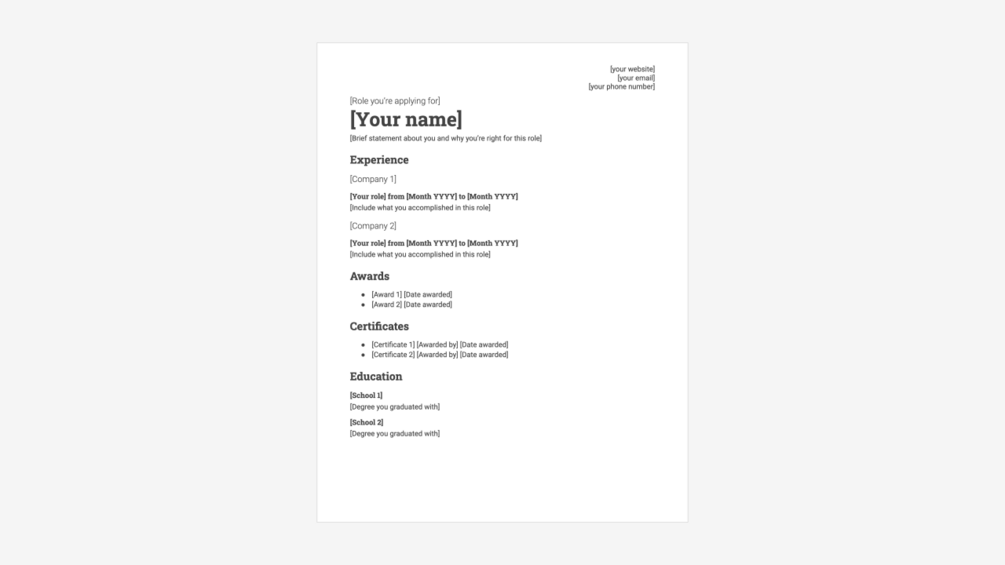 This template keeps it super simple, and recruiting software friendly, with a 1-page, single-column structure built for easy scannability.